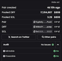 • Impermanent Loss: Adding liquidity involves risks if the price of $DIFF or SOL fluctuates significantly.
